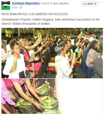 According to reports which has been making rounds on social media, a Zimbabwean Prophet, Walter Magaya, allegedly sold anointed cucumbers in his church.